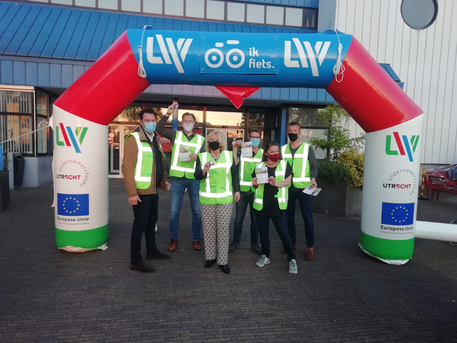 Op maandag 31 mei deelden we fietsbellen uit aan medewerkers van HEMA in het kader van de Ik Fiets Challenge op Lage Weide. De fietscampagne werd in de vroege maandagochtend bij het distributiecentrum van HEMA afgetrapt. Het promotieteam van Parkmanagement Lage Weide was speciaal voor de lancering van de campagne aangevuld met collega’s van samenwerkingspartner Goedopweg. Een enthousiast ontvangst voor alle HEMA-medewerkers onder een speciale finishboog, waar iedereen een Lage Weide fietsbel en flyer met informatie over de campagne kreeg. Daaropvolgend lag er dankzij HEMA ook nog een ontbijt klaar voor de werknemers bij binnenkomst in het distributiecentrum. Een geslaagde start van de campagne, met als doel om eind juli 2021 samen met alle werknemers op Lage Weide 10.000 fietsritjes te maken. Een mooie aanleiding om de fiets naar het werk te pakken, zeker nu de zomer echt is begonnen. Met de ‘Lage Weide fietsbel’ op je fiets natuurlijk!