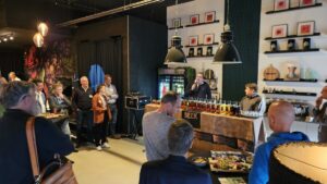 Na enkele formele besluiten werd er ook een update gegeven over recent toegekende pitches. Zo lichtte Chong Hu van CupXchange toe dat er binnen hun project nog voldoende ruimte is om mede-ondernemers kosteloos de overgang te laten maken van wegwerp koffiebekers, naar een service voor herbruikbare bekers. In het vervolg is dit ook voor ander verpakkingsmateriaal mogelijk. Ook de Audiotour Lage Weide en de realisatie van wandelroutes inclusief markering kwamen aan de orde. Tot slot kwam ook de afronding van het project ‘vergroening van de werkomgeving‘ aan bod, maar werd direct de mogelijkheid om komende voorjaar met ondersteuning geveltuinen aan te leggen toegelicht.
