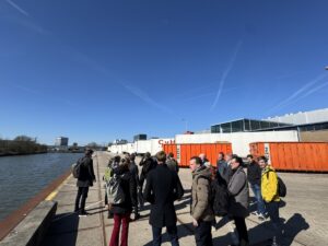 Na de introductie bij DHL vervolgde de groep de dag al wandelend richting de BioWarmte Installatie van Eneco. Tijdens deze rondleiding door het terrein gaf Bert Strijker toelichting op de verschillende initiatieven en ontwikkelingen van de E-hub op Lage Weide. Onderweg passeerde de groep onder andere het bedrijf C. van Heezik, dat zonnepanelen aan de zijkant van zijn bedrijfspand heeft gemonteerd – een mooi voorbeeld van de praktische verduurzamingsstappen die ondernemers op het terrein zetten.