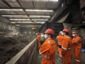 Bij de BioWarmte Installatie van Eneco op Lage Weide kregen de deelnemers uitleg over de cruciale rol die deze installatie speelt in de warmtevoorziening van Utrecht. De installatie is in gebruik genomen in 2019 en heeft een productiecapaciteit van 64 MWth, gevoed door houtchips (30 tot 80 vrachtwagens per dag).
