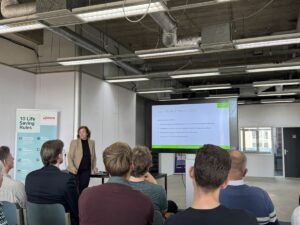 De dag werd afgesloten met een presentatie van Edith Appels (DSG/Stiho) over de Energie-Hub Lage Weide, ook wel bekend als EMCU (Energie Management Coöperatie Utrecht). Deze energiehub is een praktisch antwoord op één van de grootste uitdagingen van ons bedrijventerrein: netcongestie. De problemen rond netcongestie in de regio Utrecht duren naar verwachting tot 2034-2035, waardoor nieuwe bedrijfsaansluitingen op een wachtlijst belanden.